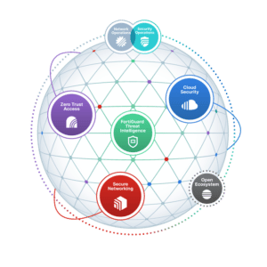 La Security Fabric de Fortinet constitue une plateforme de cybersécurité ultra-performante, optimisée par le système d’exploitation FortiOS, et accompagnée par un écosystème riche et ouvert. Elle protège l’ensemble de la surface d’attaque, en proposant des fonctions de sécurité et réseau qui protègent les dispositifs, les données et les applications.