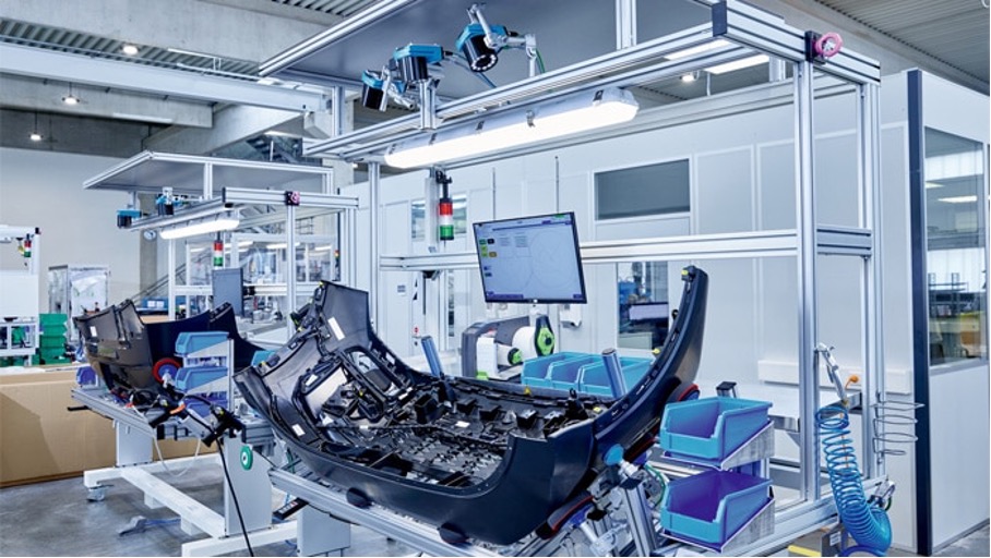 La fabrication par assemblage de composants et la conception modulaire se sont entièrement normalisées au cours des dernières années. Selon Tobias Magg, chef de projet chez RIBE, il est devenu de plus en plus important d’inspecter les composants individuels dans les systèmes d’assemblage. C’est pourquoi ils proposent désormais à l’industrie automobile un système de montage final pour les pare-chocs qui vérifie, étape par étape, si les pièces correctes pour le pare-chocs ont été sélectionnées et montées. L’opérateur voit le résultat directement et clairement sur l’écran devant lui.