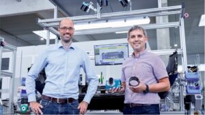 De gauche à droite : Tobias Magg, chef de projet Conception mécanique chez RIBE Anlagentechnik GmbH ; Walter Spiegel, directeur régional des comptes chez SICK Vertriebs-GmbH